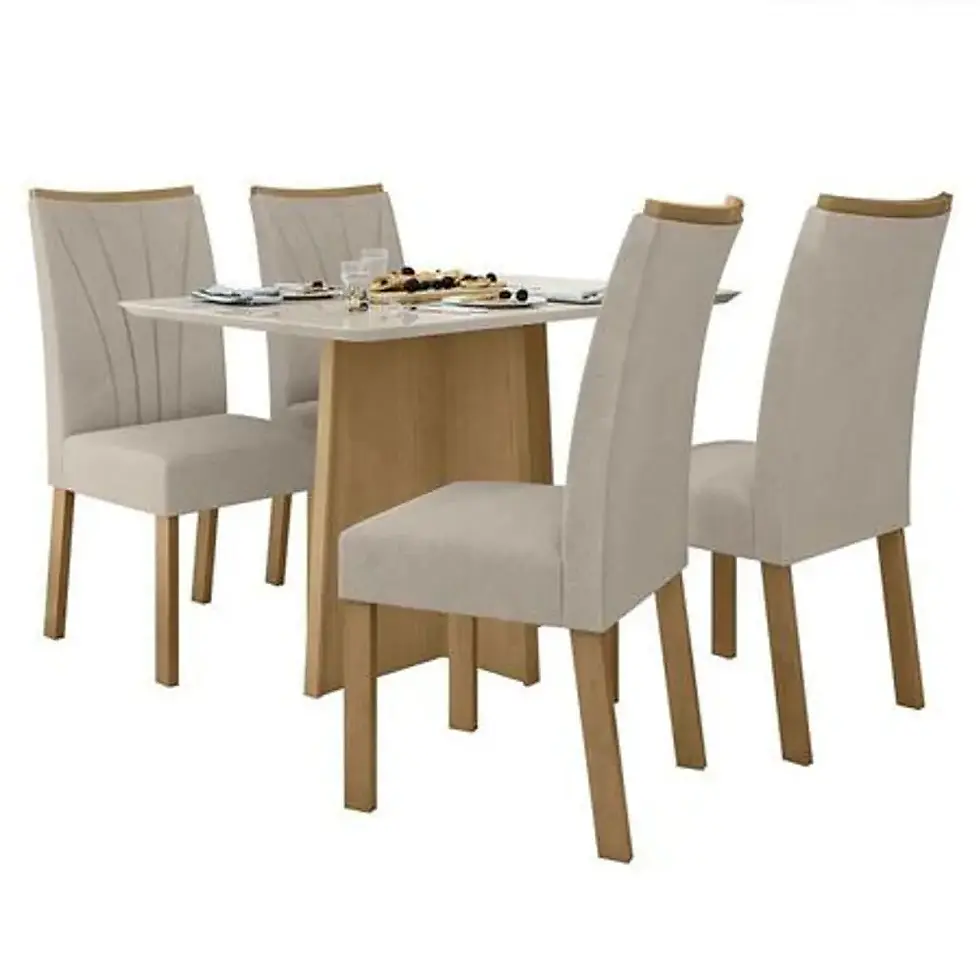 Conjunto São Carlos Mesa 4 Cadeiras Ayla Bege/Naturale/Off White