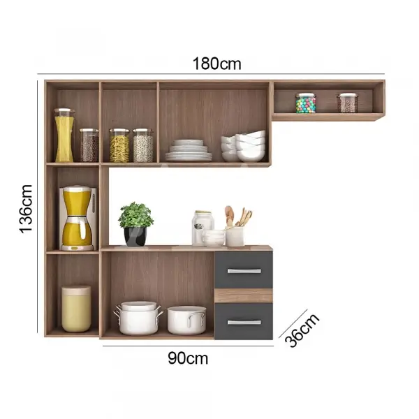 Cozinha Completa Sem Balcão Ronipa Carmenere Amendoa/Chumbo