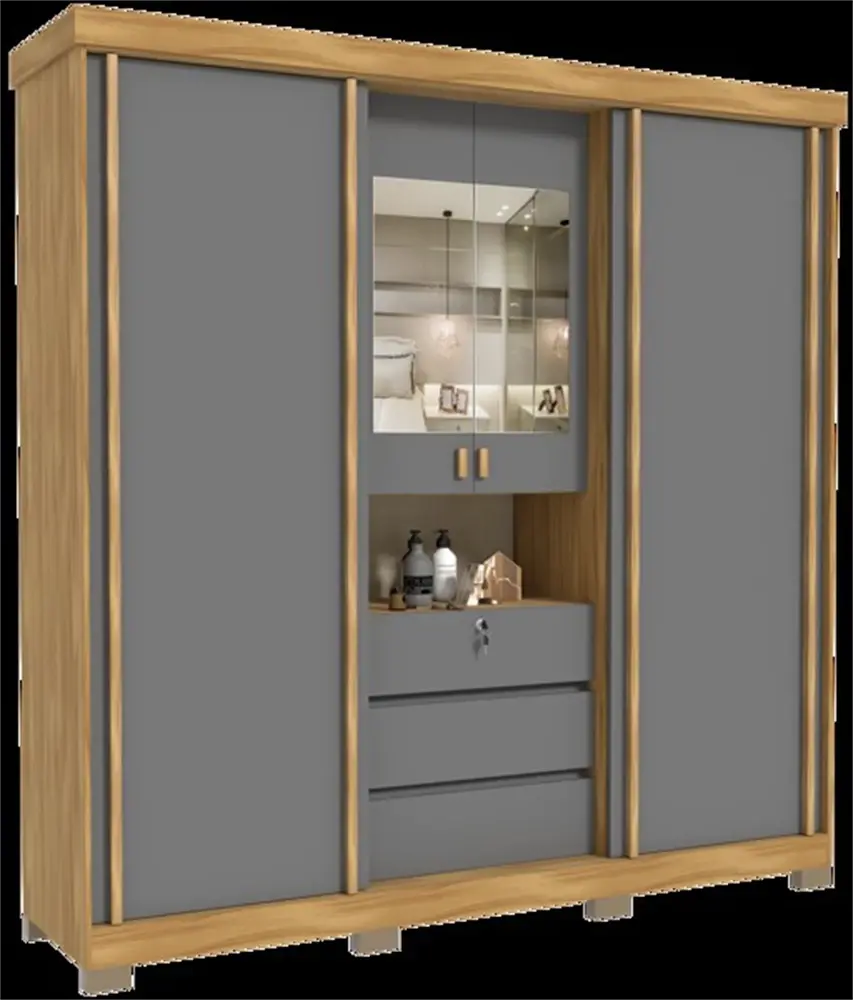 Guarda Roupa Andira Star Jatobá Espelho e Pés