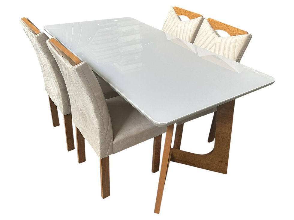 Conjunto de Mesa Safira 120 C/ Vidro 4 Cadeiras Perola Linho Bege