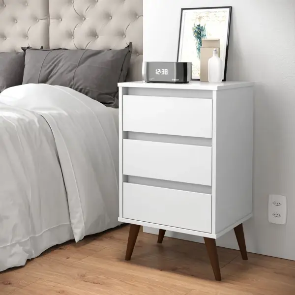 Mesa de Cabeceira 3 Gavetas EJ Retrô Wood Branco